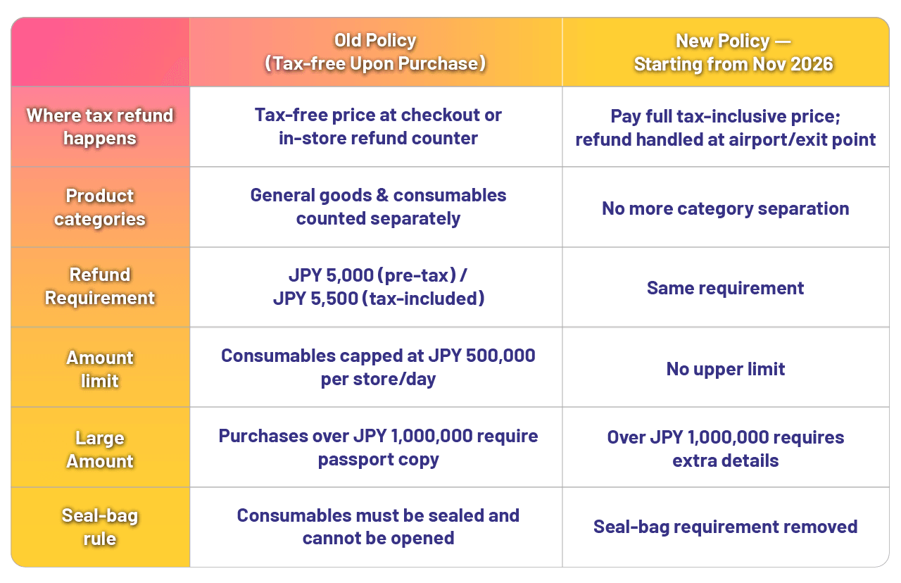 Japan’s New Tax‑free System | Starting from Nov 2026: Shift from “Tax‑free Upon Purchase” to “Pay First, Refund Later”