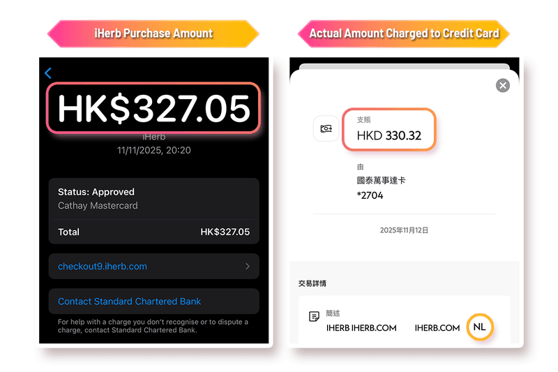 🔎 Example: iHerb Online Shopping (Paid in HKD, but the merchant is registered overseas)