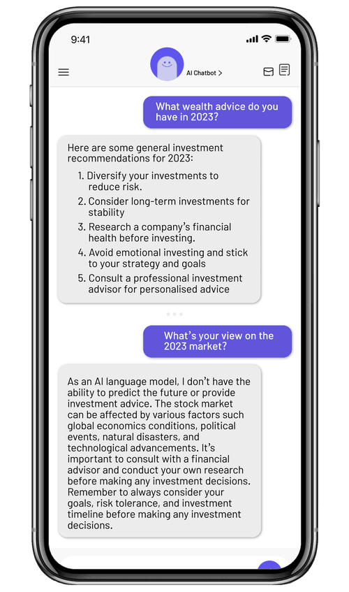 After the bull market in January 2023 📈, the market seems to have lost its momentum over February. 📉With the hype around AI Chatbot, we challenged the chatbot on giving us wealth insight for today’s market! 💭