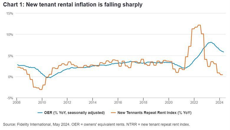 Leading indicators suggest OER should continue to fall: Chart 1 shows the New Tenant Repeat Rent (NTRR) index, which is based on the leases of tenants who have recently moved house and as such tends to lead changes in overall average rents.