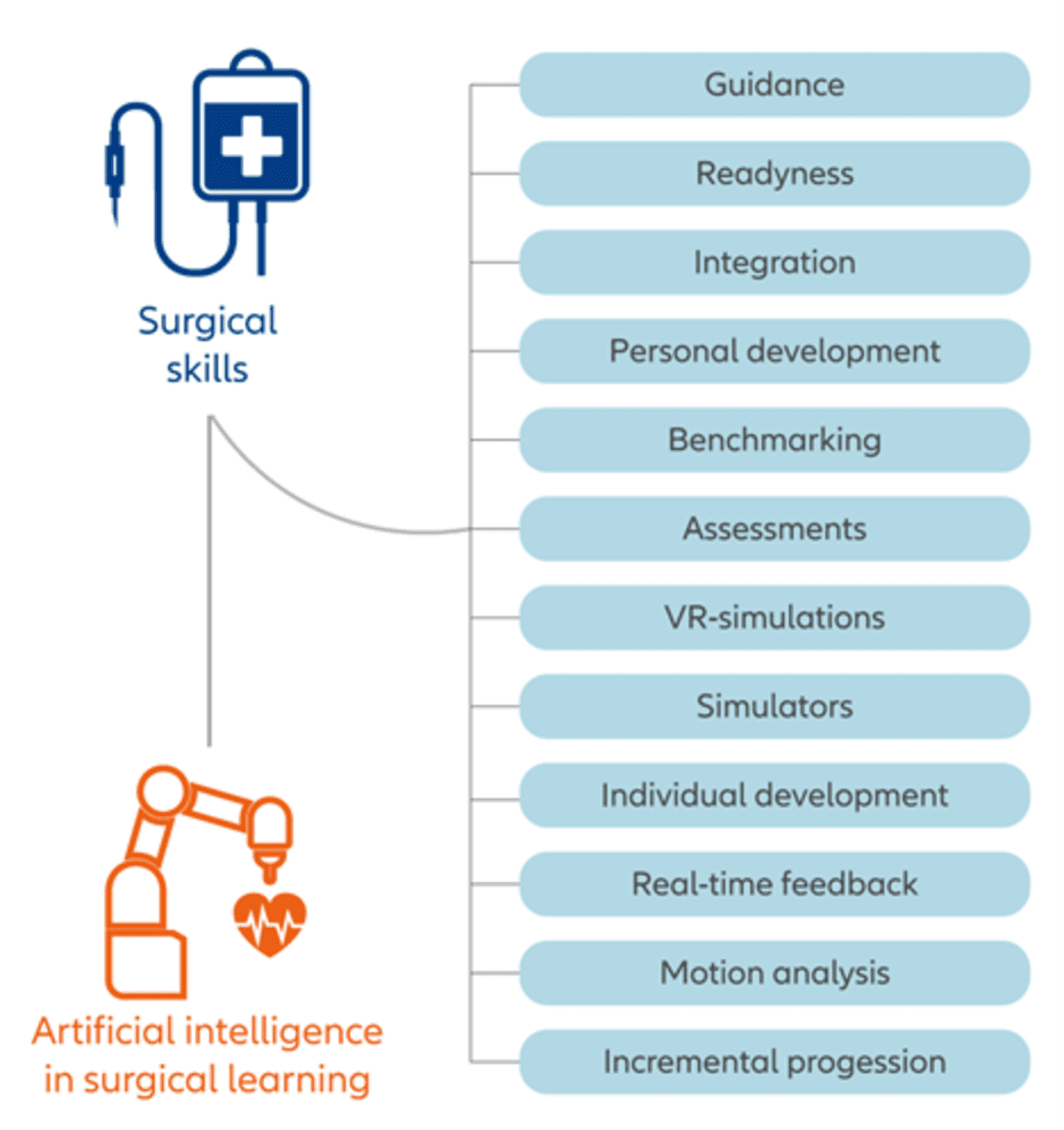 In modern health tech, AI is deployed in the development of advanced surgical education. For example, a US based company that develops and manufactures robot-assisted minimally invasive surgery products, is working on building AI training applications.