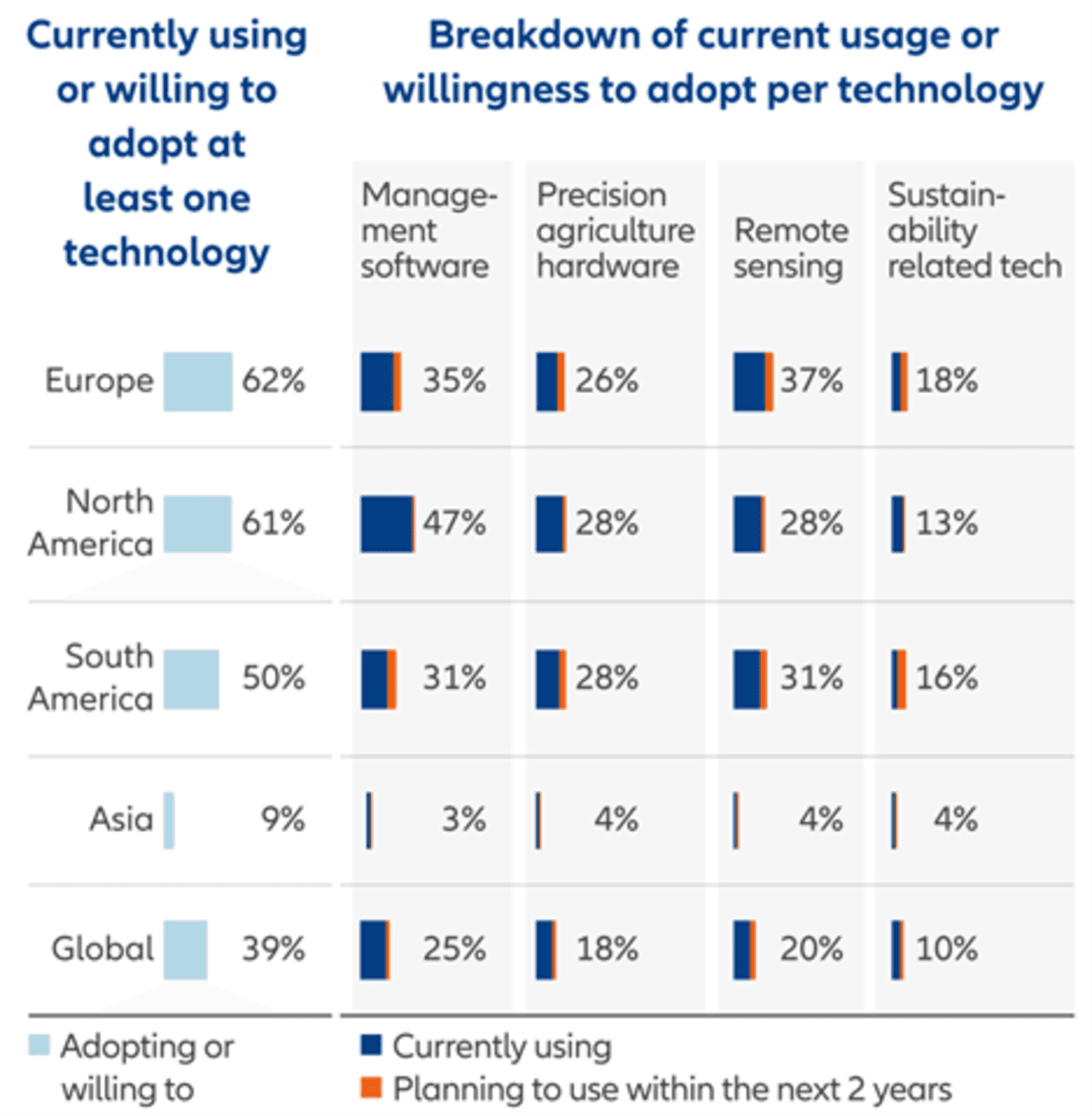 This is especially true for Asia, which has the world’s largest amount of arable land3 and, in parallel, the lowest adoption rate for precision farming.