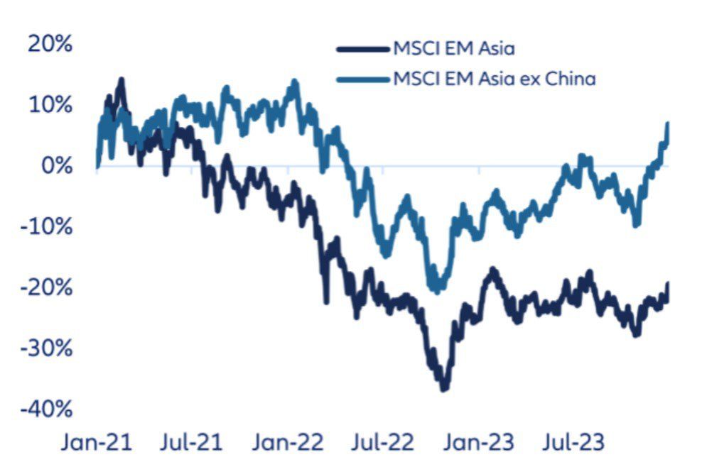MSCI Emerging Asia compared to MSCI Emerging Asia ex China – since end of 2020 (USD)