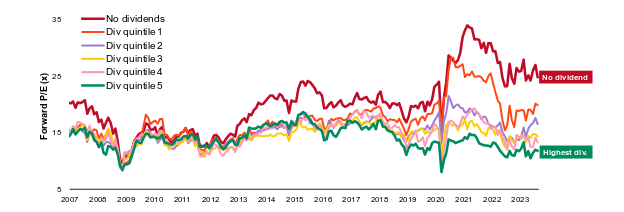 Chart 1: Forward P/E by Dividend Quintiles – MSCI USA Index
