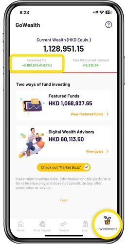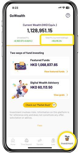 You can view your fund holding investment profit and loss at a glance on the WeLab Bank App!