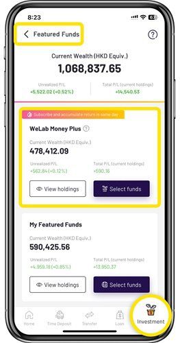 Open WeLab Bank App and click Investment now to learn more!