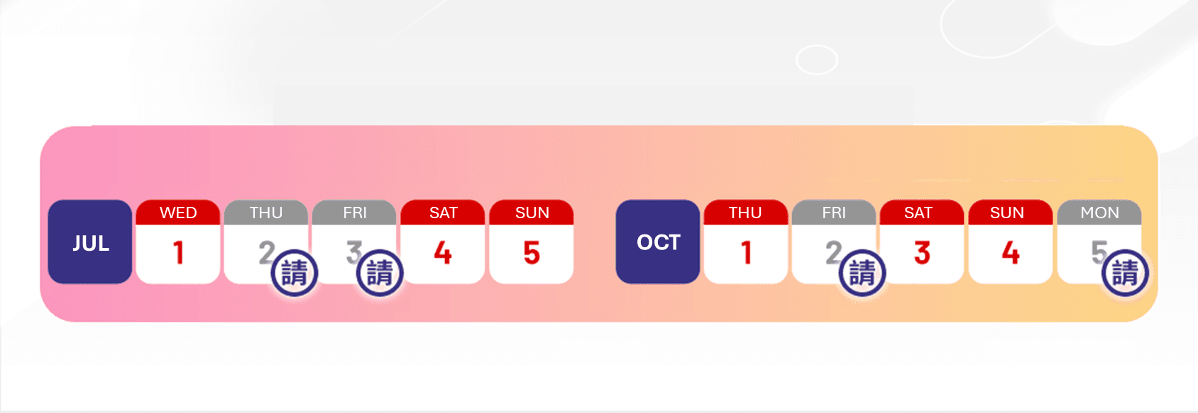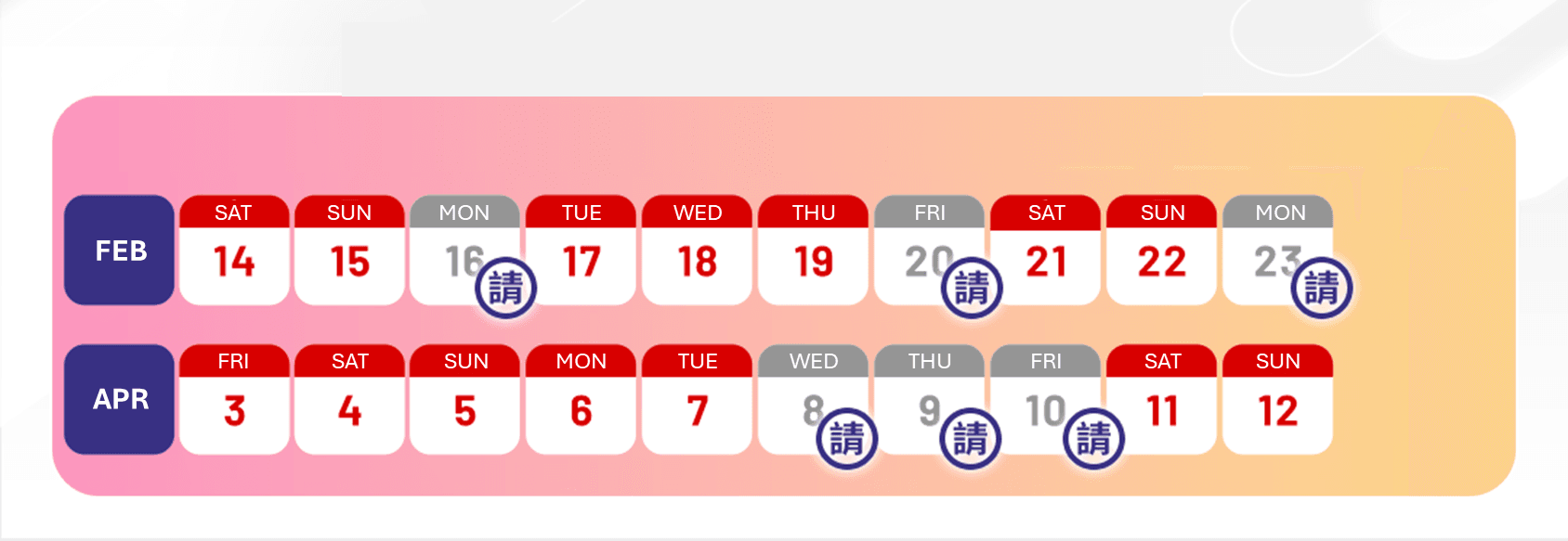 If a 3 or 4-day short break isn't enough, just take 1-2 AL days on specific dates to extend your holiday to 5 days! It’s perfect for a short-haul trip, allowing for a more in-depth experience without being too tiring—a high-value choice!