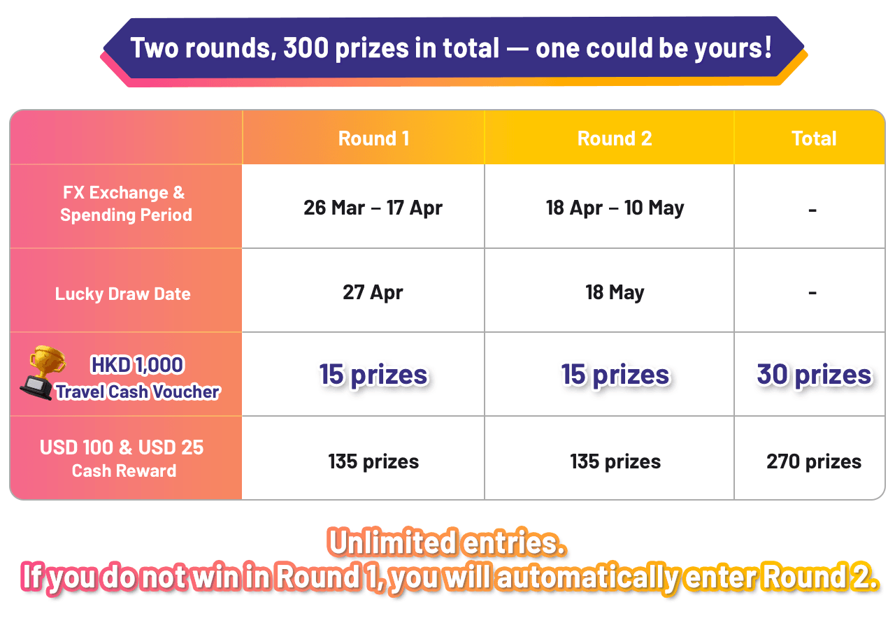 For the Same HKD 5,000: Local spend = 20 chances VS FX exchange = 50 chances