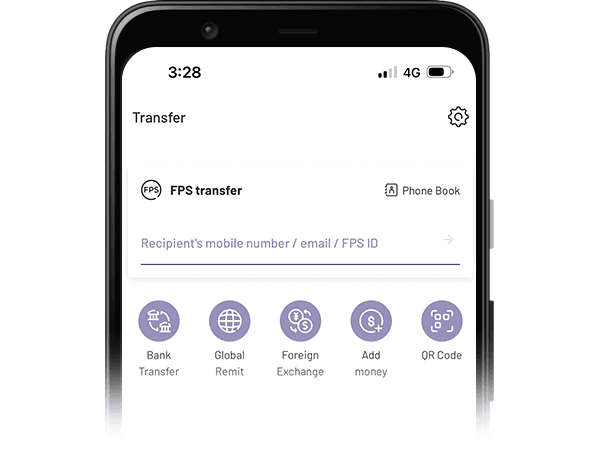 You can make FPS transfer by selecting recipient’s bank, entering his/her account number and name.