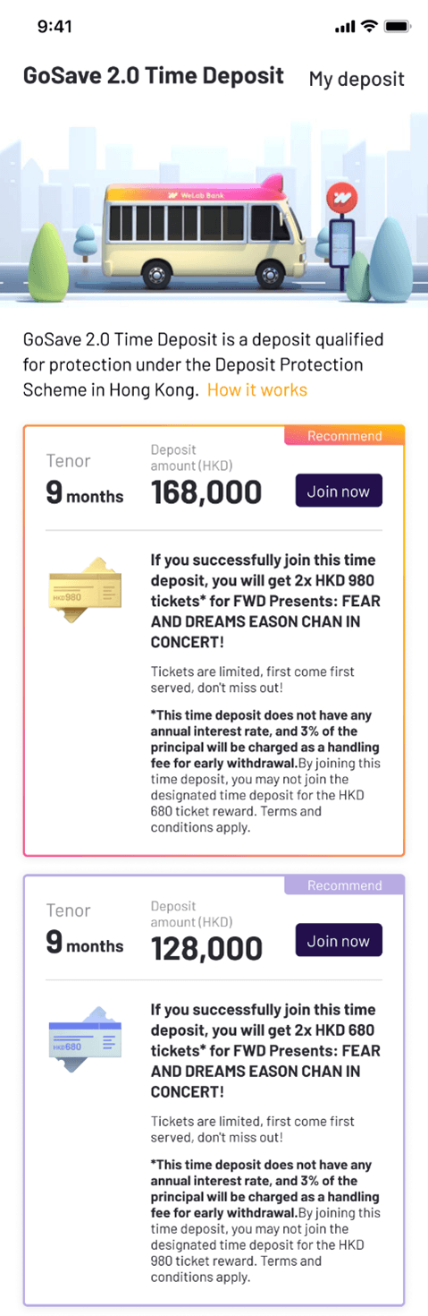 [15] This Time Deposit Promotion is applicable to Eligible Customers who successfully set up a designated time deposit for this Promotion via WeLab Bank app within the Promotion Period (as illustrated in below image (“Eligible Time Deposit”)).