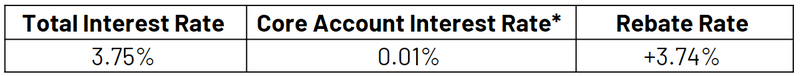 (b) Rebate Rate shall be equal to 3.75% minus the basic interest rate applicable to the Core Account of the Eligible Customer (“Core Account Interest Rate”) and calculated on a 365 days basis (a 366-day basis in the case of a leap year). However, in any event, the sum of Rebate Rate and Core Account Interest Rate shall not exceed 3.75%.