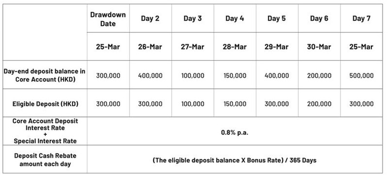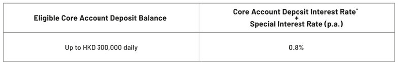 (a) the daily Core Account deposit balance (up to HKD300,000) and the relevant special interest rate as provided in the table below; and