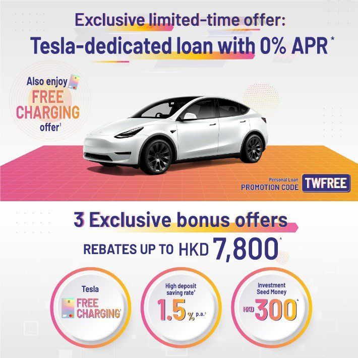 For more details about WeLab Bank Exclusive Limited-time Offer: Tesla-dedicated Loan with 0%, please refer to WeLab Bank official website.