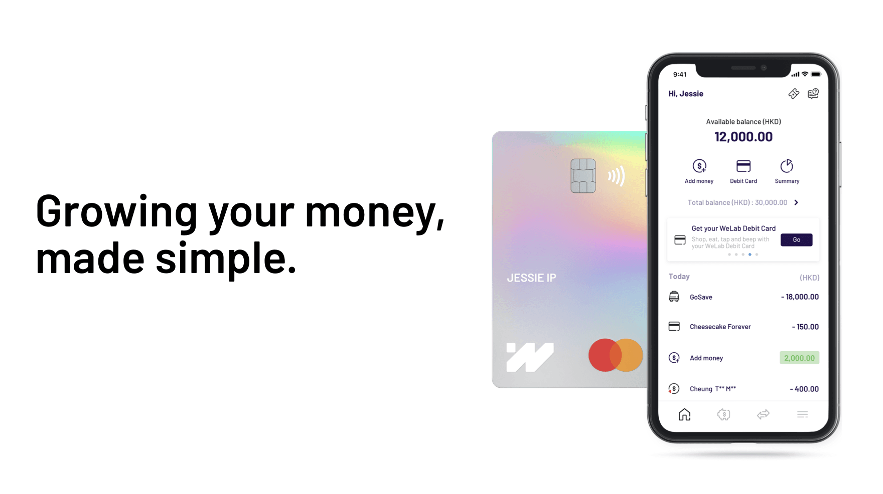 WeLab Bank represents a 100% digital banking experience that is simple, intuitive and built around our customers. WeLab Bank is consisted of a powerful mobile app and a numberless Debit Card, both designed with obsession with customers’ experience and data security.