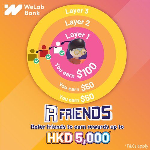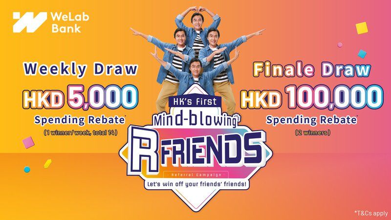 WeLab Bank “R Friends Referral Campaign” Gives Away Multi-wave Rewards. Sits Back to Earn up to HKD5,000 Referral Rewards. Wins Weekly Draw for HKD5,000 Rebates and Finale Draw for HKD100,000 Rebates!