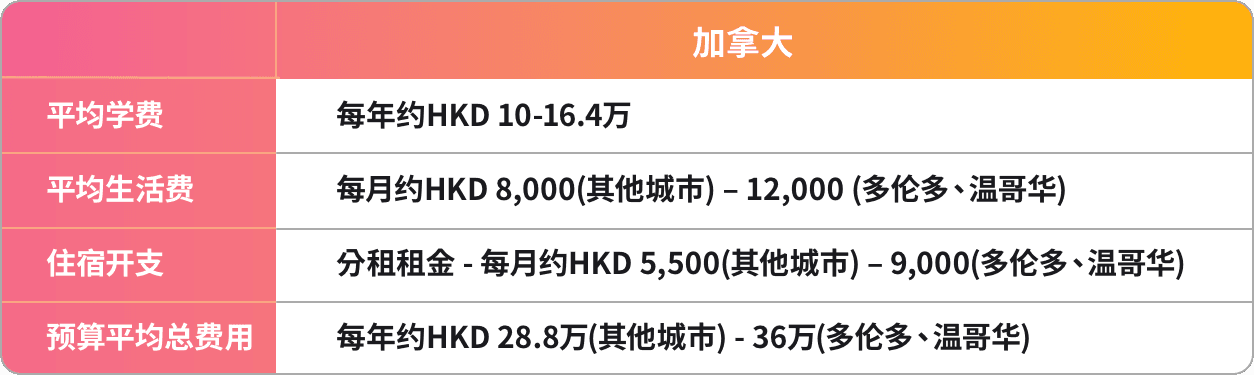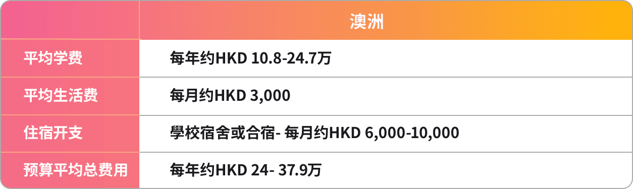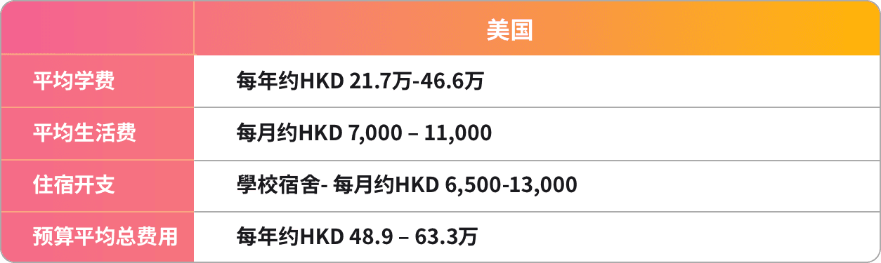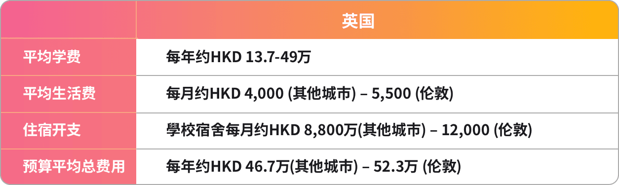 (1) 资料来源:【海外升学2025 | 一文睇清10大热门地点学费/使费 最平不是台湾? | 香港01】汇立银行不保证上述资讯的准确性、充分性、可靠性或完整性,并明确声明不就该等资讯的错误或遗漏承担任何责任;汇立银行并不就该等资讯作出任何保证。