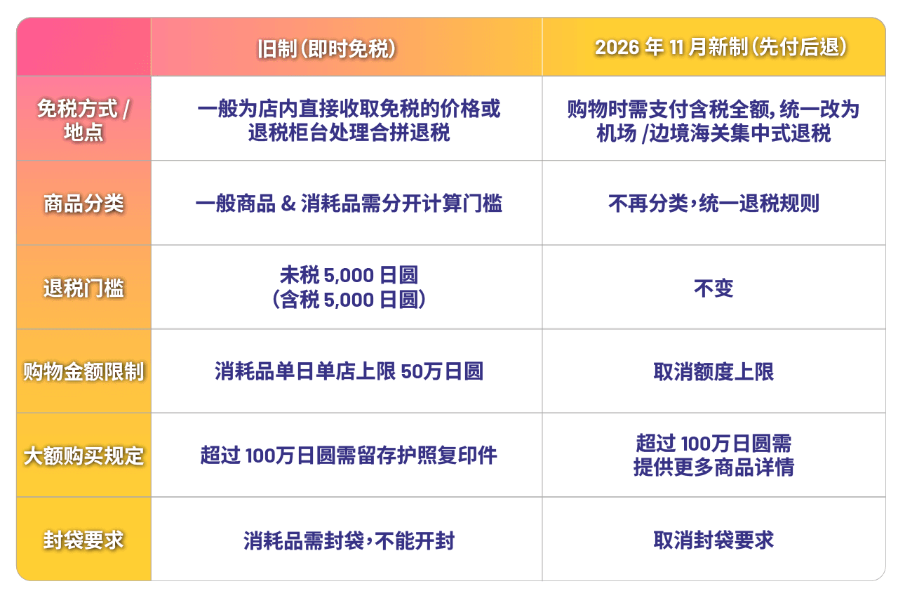 日本退税新制┃2026 年 11 月全面实施:由「即买即退」走向「先付后退」