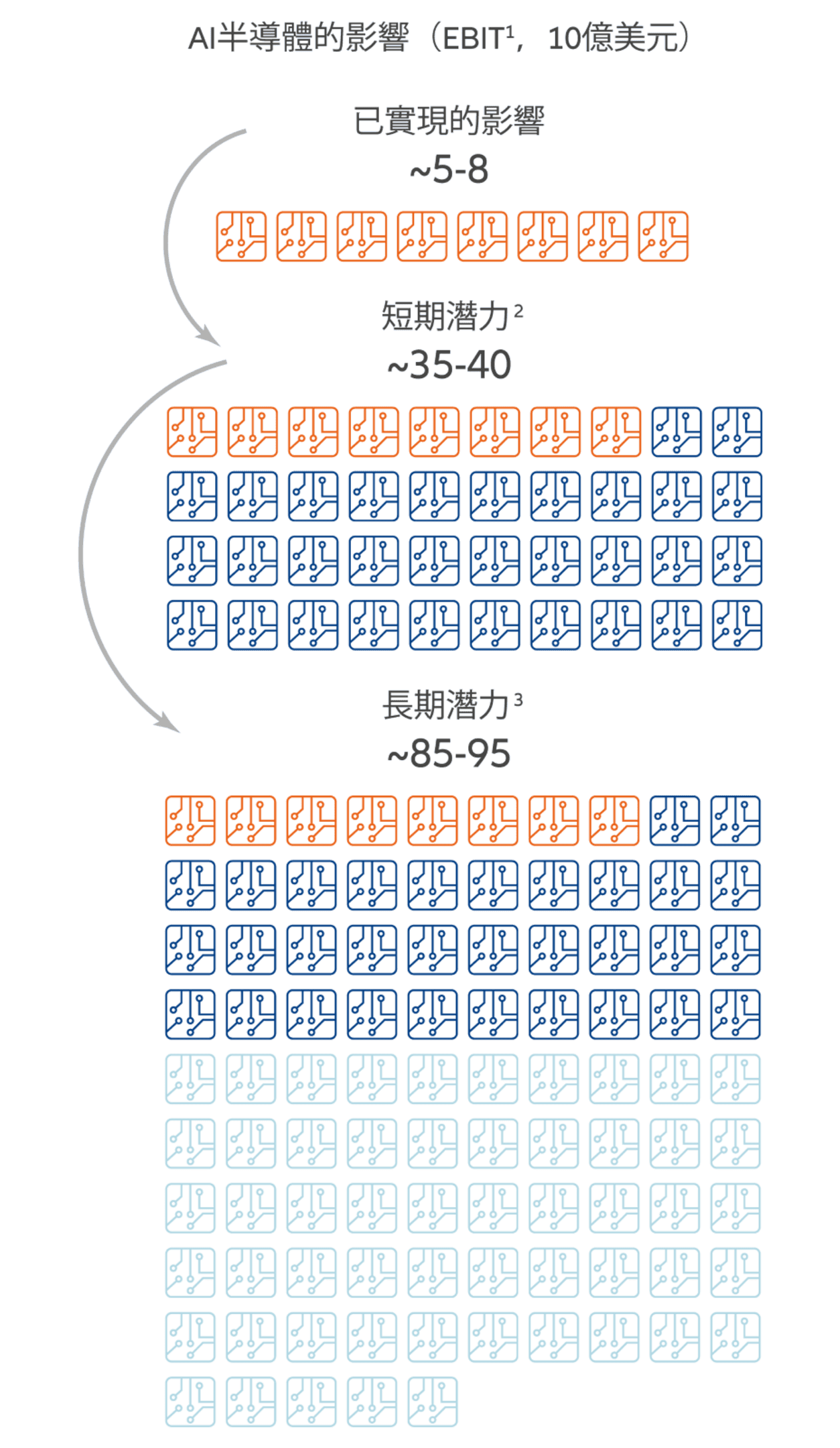 长远而言,人工智能可望为半导体企业带来850亿至950亿美元的收入