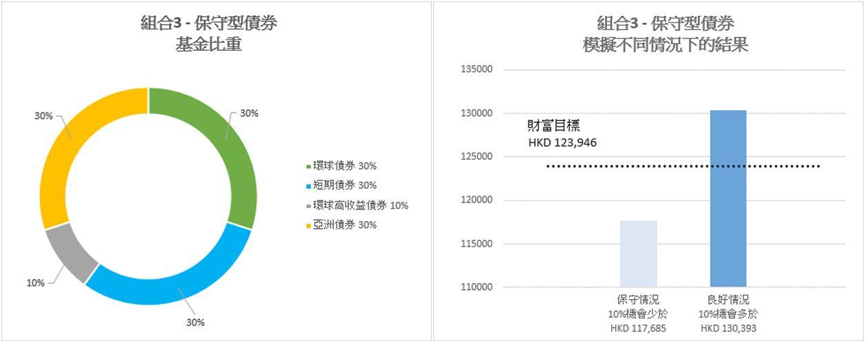 **保守情況及良好情況是分別根據你的目標設定、投資計劃、投資組合建議以及我們對資本市場的預期,以計算出你投資組合價值第10個百分位數及第90個百分位數的數值。請注意,基金價格可升可跌,甚至有可能變得一文不值。