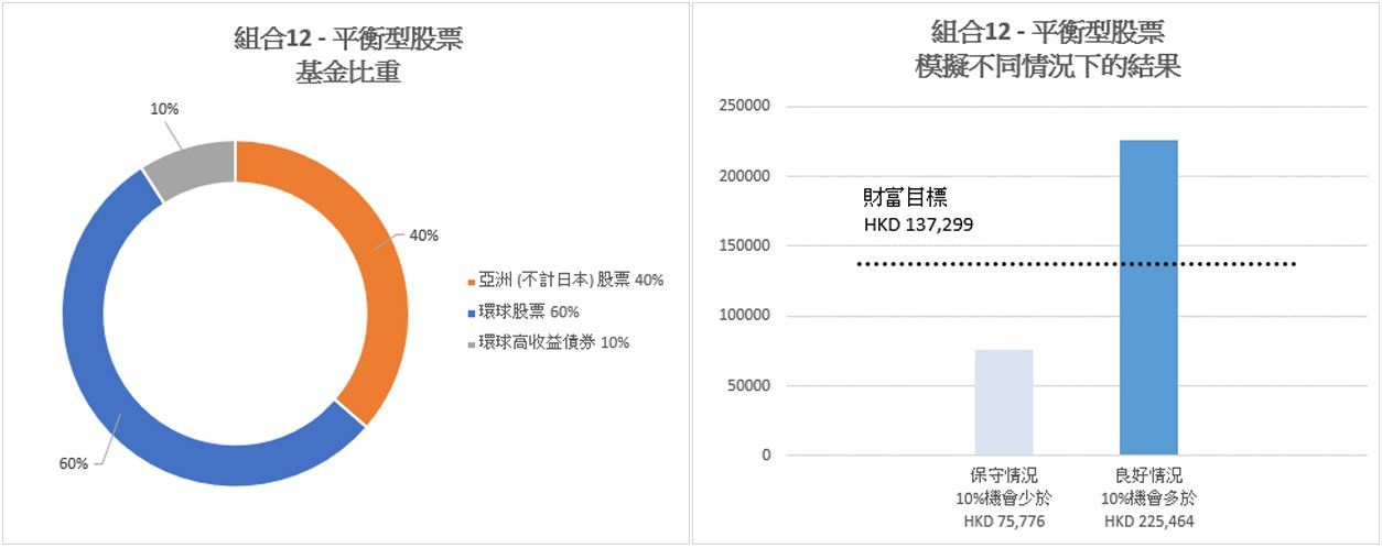 *以上圖表說明投資組合建議在保守情況及良好情況的表現,財富目標亦在圖表中標示,有關資料僅供參考。GoWealtho智動投資顧問的建議是基於你的目標設定及相關個人情況。你的風險偏好、風險承受能力、具體投資目標和投資期限、投資產品知識和經驗以及您的財務狀況也會在下單時進行評估。然而,該建議並非末來表現的保證或確保你能夠實現目標。進行投資之前,你需要小心考慮投資目的、風險、收費同開支,如有需要可以尋求獨立專業建議。有關投資組合建設的詳細資料,請參閱GoWealth智動投資顧問的常見問題部分。