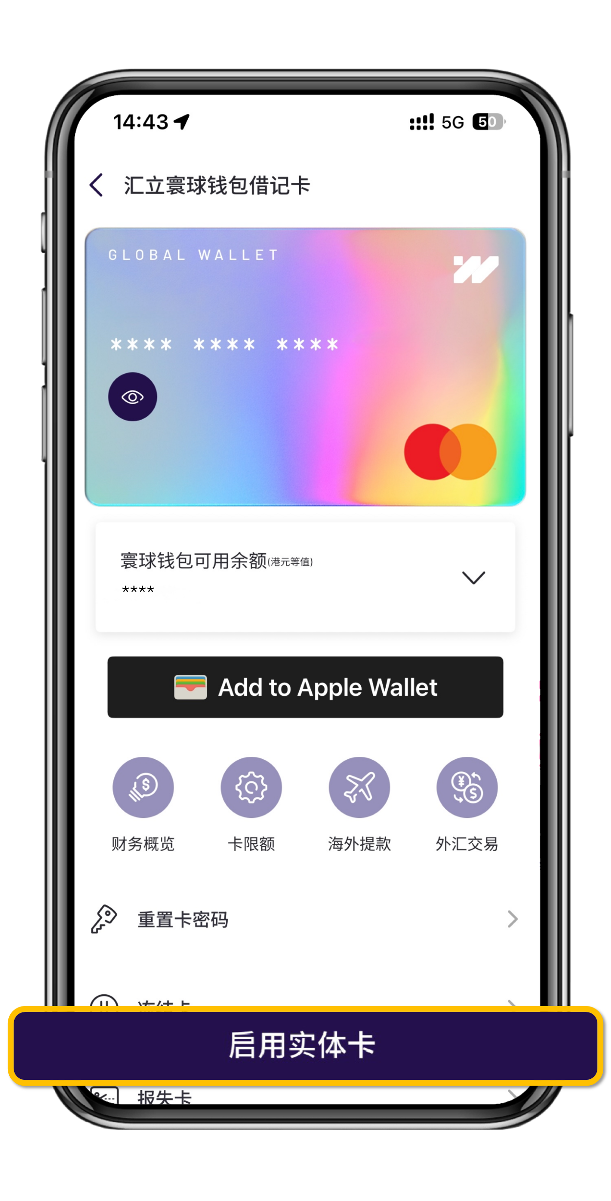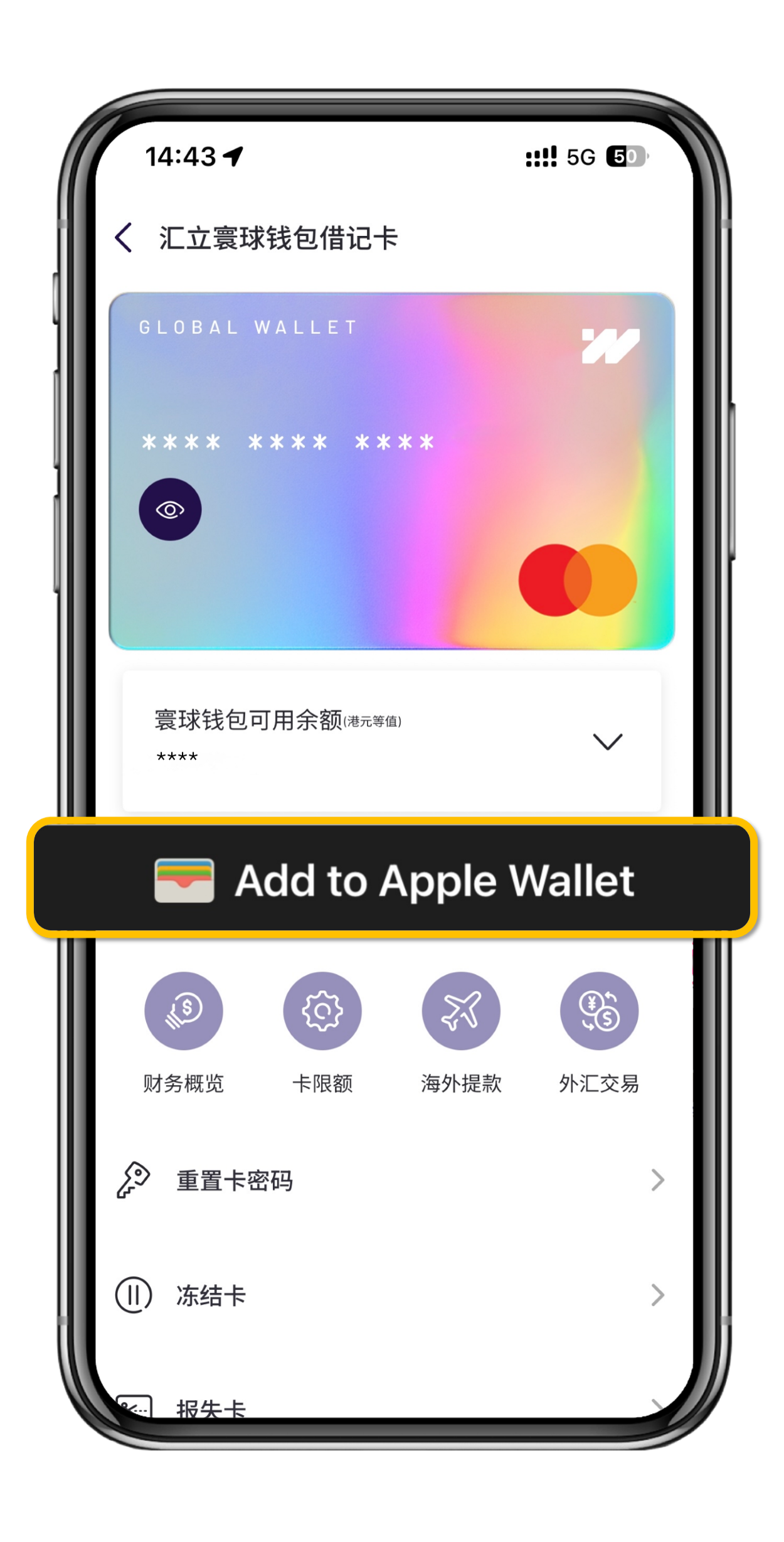 你的汇立银行账户会附上一张借记卡💻,无需实体卡即可通过加入 Apple Pay 进行付款及网购。