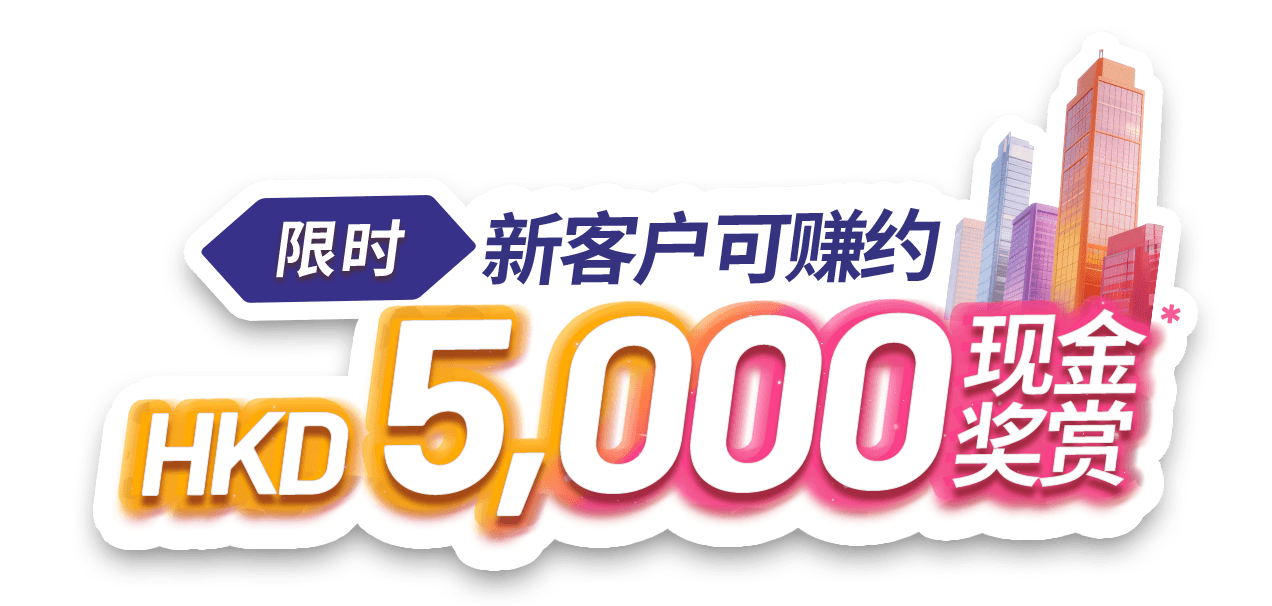 【迎新二重赏】开户可享约HKD 5,000 现金奖赏**💰