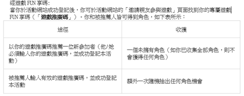 [7] 你可經以下途徑收集角色,如下表所示: