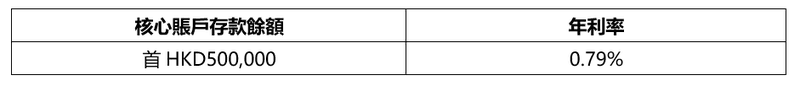 [3] 從計劃期起,你在核心賬戶中的合資格存款(最高為HKD500,000 的核心賬戶存款餘額)可繼續獲得你已合乎資格參與的現有計劃的現金回贈。現金回贈將按365 日(閏年的情況下為 366 日)每日單利息基準計算,並根據年利率如下: