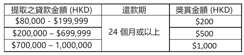 [4] 獎賞金額將從成功將貸款存入你的核心賬戶後起15個工作天內存入你的核心賬戶。