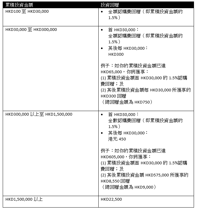 [8] 投資回贈並非費用豁免,你的合資格交易將會被收取相關的認購費。