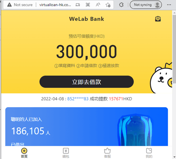 WeLab Bank发现以下伪冒本行的网站,而该伪冒网站与本行没有任何关系 。 此外,WeLab Bank 提醒客户,本行不会透过即时通讯程式邀请客户申请任何银行服务。