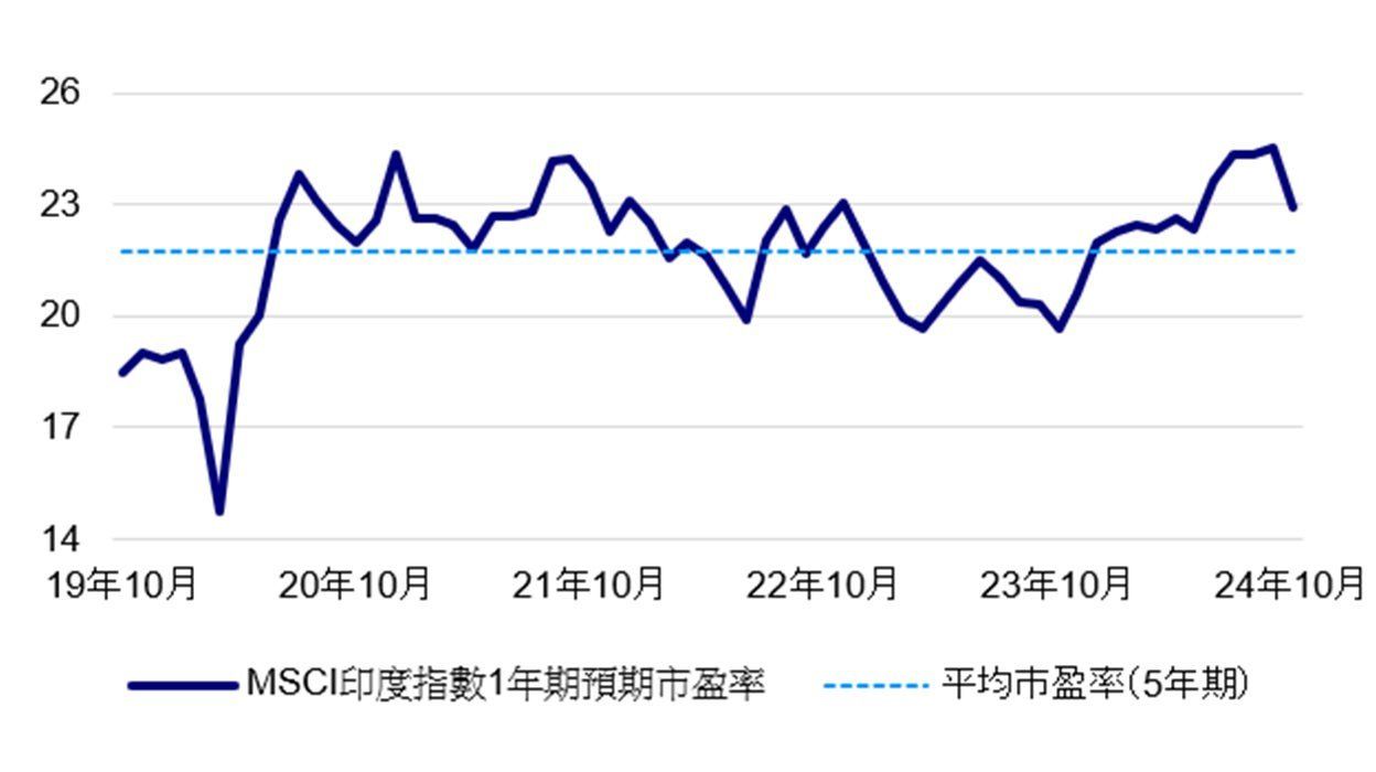 考慮到長期增長動力保持穩定,我們預期印度股票估值仍將保持在長期趨勢範圍內。