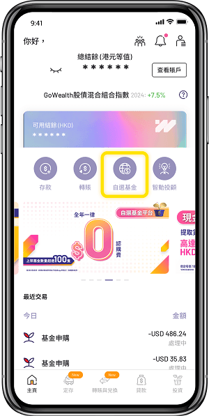1.登入 WeLab Bank首頁選擇「自選基金」