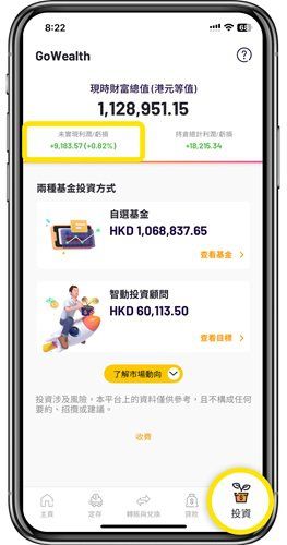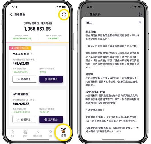 WeLab Bank App 可以一眼睇清你持有嘅基金投資賺蝕情況啦!