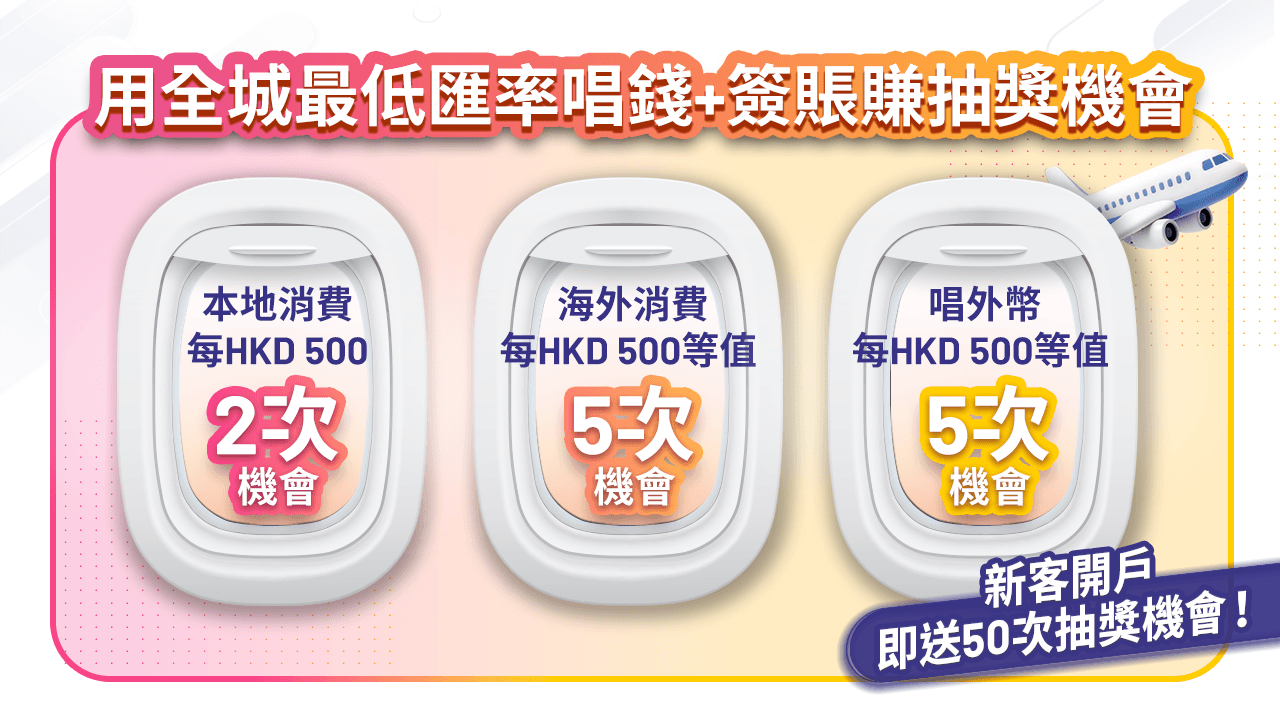 💱用全城最低匯率1簽賬+唱錢即獲抽獎機會!簽得越多唱得越多・中獎機會愈高,機會無上限🎰!