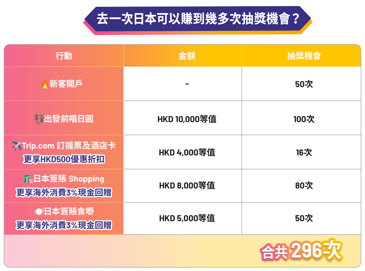 📊去一次日本可以賺到幾多次抽獎機會?