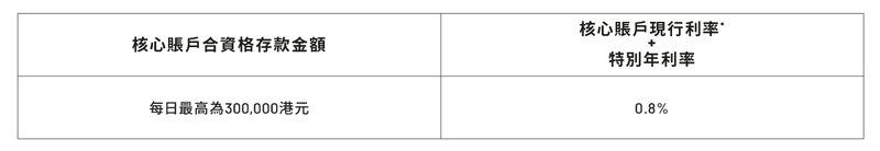 為免生疑問,上述年利率0.8%將包括你的核心賬戶存款年利率。
