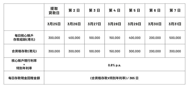首個月的存款現金回贈,只會計算由提取貸款日至月底的核心賬戶存款餘額。