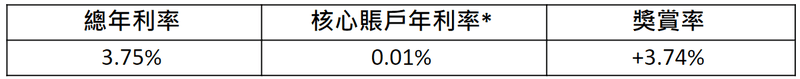 上述總年利率3.75%將包括你的核心賬戶存款年利率。