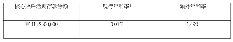 上述年利率1.5%將包括你的核心賬戶存款年利率。