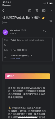 3. 當你收到由WeLab Bank電郵通知你開戶已完成,就代表你已經完成開戶程序並成功開戶(「確認電郵」)。