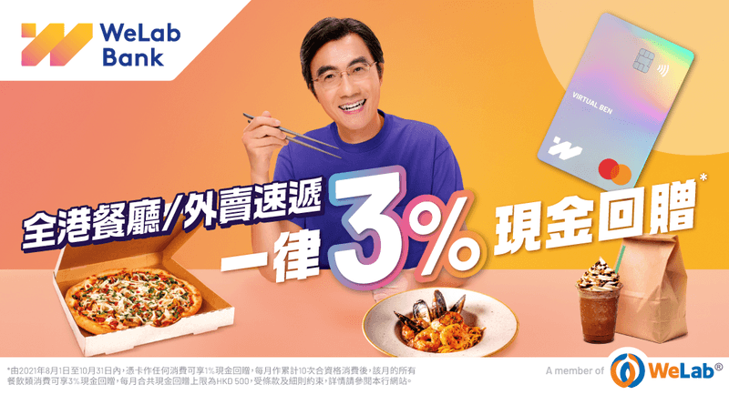 WeLab Bank升級餐飲消費回贈計劃 一星期七日全港餐廳所有堂食外賣速遞盡享3% 現金回贈*